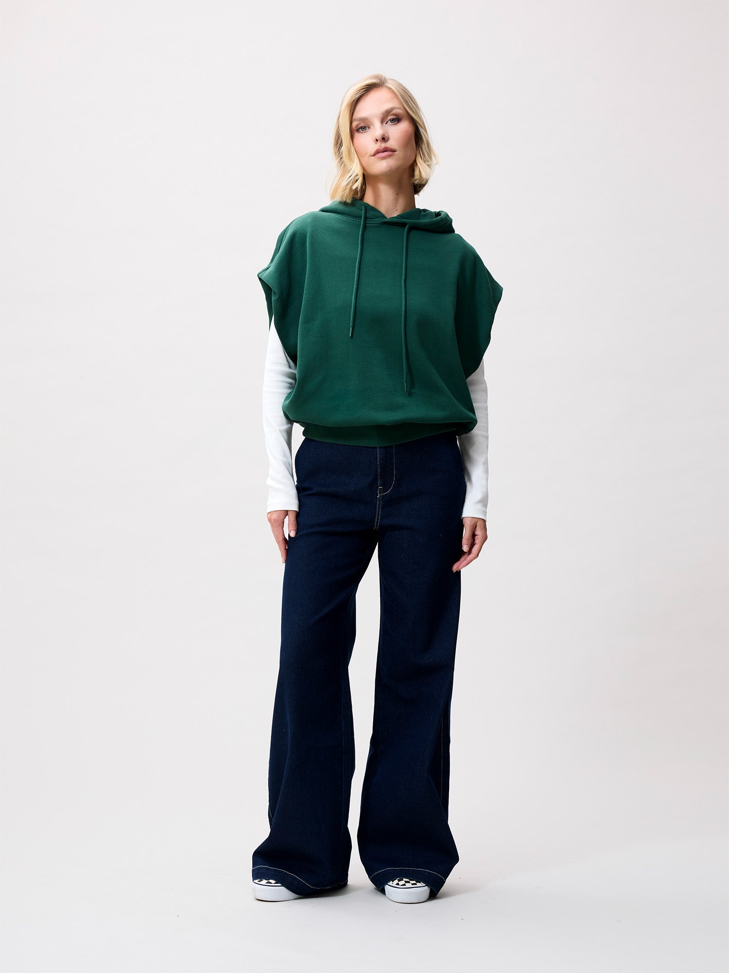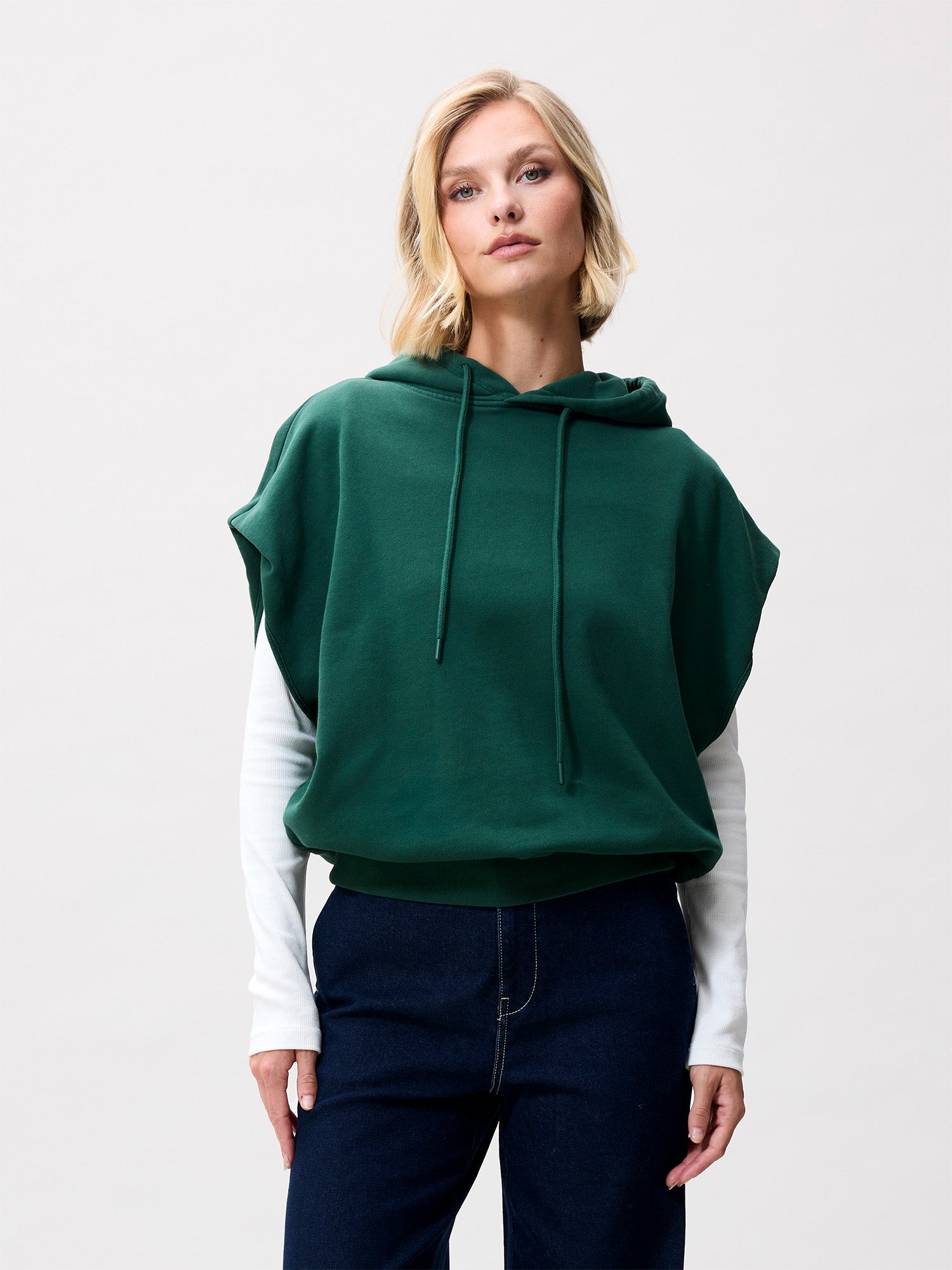 Sleeveless sweater with hood