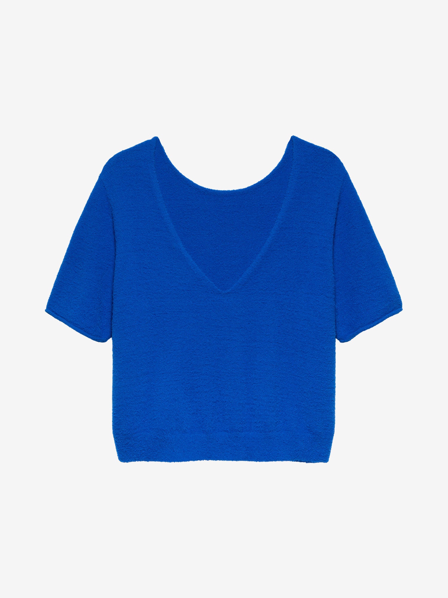 • Knitted short-sleeve sweater with a V-neck made from an extra-soft fabric. The sweater is reversible, so you can choose whether to wear the V-neck at the front or the back.